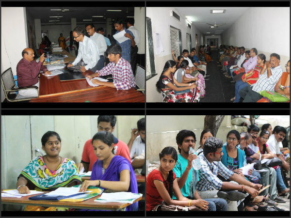 హైదరాబాద్లోని మసాబ్ట్యాంక్ ఎంసెట్ కౌన్సెలింగ్ సెంటర్లో విద్యార్థుల ధృవపత్రాలు పరిశీలిస్తున్న దృశ్యం.