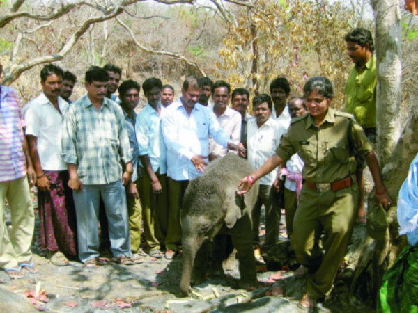 అటవీ శాఖ సిబ్బంది నీటి కుంటలో పడిన ఏనుగు పిల్లను తాళ్లతో పైకిలాగి రక్షించారు. పశువైద్యాధికారులతో పరీక్షలు నిర్వహించారు. ఆ తరువాత అడవిలో ఏనుగుల గుంపులో వదిలేసినట్లు ఎఫ్ఆర్ఒ బాలవీరయ్య తెలిపారు.