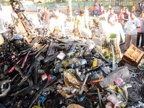 కర్నూలులో భారీ అగ్ని ప్రమాదం;ఆటోమొబైల్ షాపు దగ్థం;కావాలనే తగలబెట్టారంటున్నయజమాని