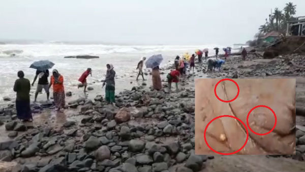 సముద్రం నుండి బంగారం కొట్టుకు వస్తుందని, సముద్రతీరాన బంగారం దొరుకుతుందని ప్రచారం జోరుగా సాగుతున్న నేపథ్యంలో సముద్రంలో చేపల వేట సాగించే మత్స్యకారులతో పాటుగా, సమీప ప్రాంతాల ప్రజలు అక్కడ చాలా సీరియస్ గా బంగారం కోసం అన్వేషణ మొదలుపెట్టారు . జోరున వాన పడుతున్నా లెక్కచేయకుండా , చలి గాలులను సైతం పట్టించుకోకుండా బంగారం కోసం తెగ వెతుకుతున్నారు . సముద్ర తీరంలో తనకు బంగారం ఒక దొరికిందని, బంగారం కొట్టుకు వస్తుందని ఒక మహిళ తనకు దొరికిన ఒక బంగారం ముక్కను చూపించడంతో ఇంకేం తమకు కూడా దొరుకుతుంది అంటూ సముద్రతీరానికి పరుగులు తీశారు జనం.