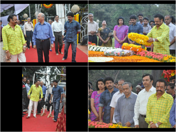 మాజీ రాజ్యసభ సభ్యుడు నందమూరి హరికృష్ణ తన సోదరుడు జయకృష్ణతో కలిసి తండ్రి ఎన్టీ రామారావుకు నివాళులు అర్పించడానికి వచ్చారు.