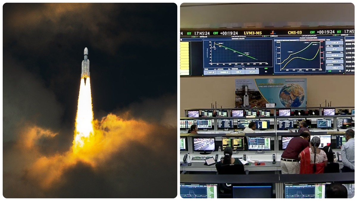 భారత లాంచ్ వెహికల్ జియోసింక్రోనస్ ట్రాన్స్ఫర్ ఆర్బిట్ (జీటీవో)లోకి మోసుకెళ్లే అత్యంత బరువైన కమ్యూనికేషన్ ఉపగ్రహం సీఎంఎస్-03తో కూడిన ఇస్రో హెవీ-లిఫ్ట్ రాకెట్ ఇవాళ శ్రీహరికోటలోని అంతరిక్ష కేంద్రం షార్ లోని ప్రయోగ వేదిక నుంచి ఎగిరింది. 24 గంటల కౌంట్డౌన్ ముగిసిన తర్వాత 43.5 మీటర్ల పొడవైన ఈ రాకెట్ చెన్నై నుండి దాదాపు 135 కి.మీ దూరంలో ఉన్న ఈ అంతరిక్ష నౌకలోని రెండవ ప్రయోగ వేదిక నుండి సాయంత్రం 5.26 గంటలకు ఆకాశంలోకి దూసుకెళ్లింది. దాని తోక నుండి ప్రకాశవంతమైన నారింజ రంగు పొగలను వెదజల్లింది.