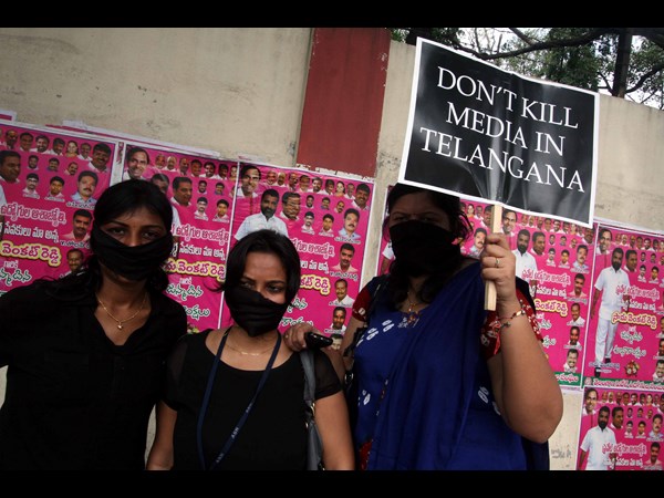 తెలంగాణలో ఎబిఎన్ ఆంధ్రజ్యోతి, టీవీ9 ప్రసారాల నిలిపివేతపై మహిళా జర్నలిస్టులు మంగళవారంనాడు ముఖ్యమంత్రి కార్యాలయం వద్ద నిరసనకు దిగా, ఐటి శాఖ మంత్రి కెటి రామారావుకు నిరసన సెగ తగిలిన విషయం తెలిసిందే.