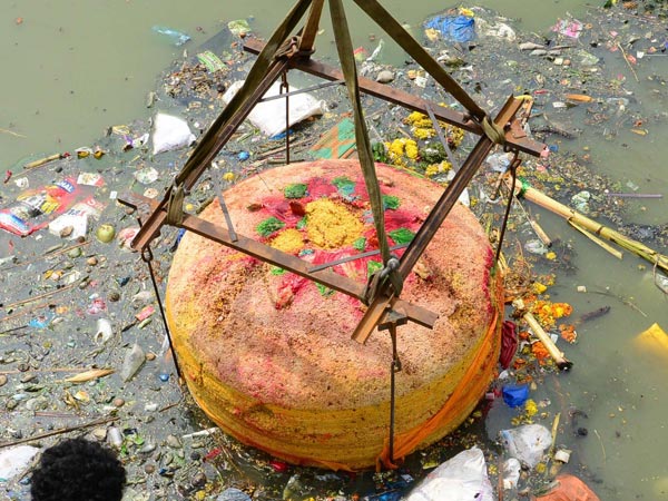తయారుదారు కంటతడి: లడ్డూ నిమజ్జనం (పిక్చర్స్)