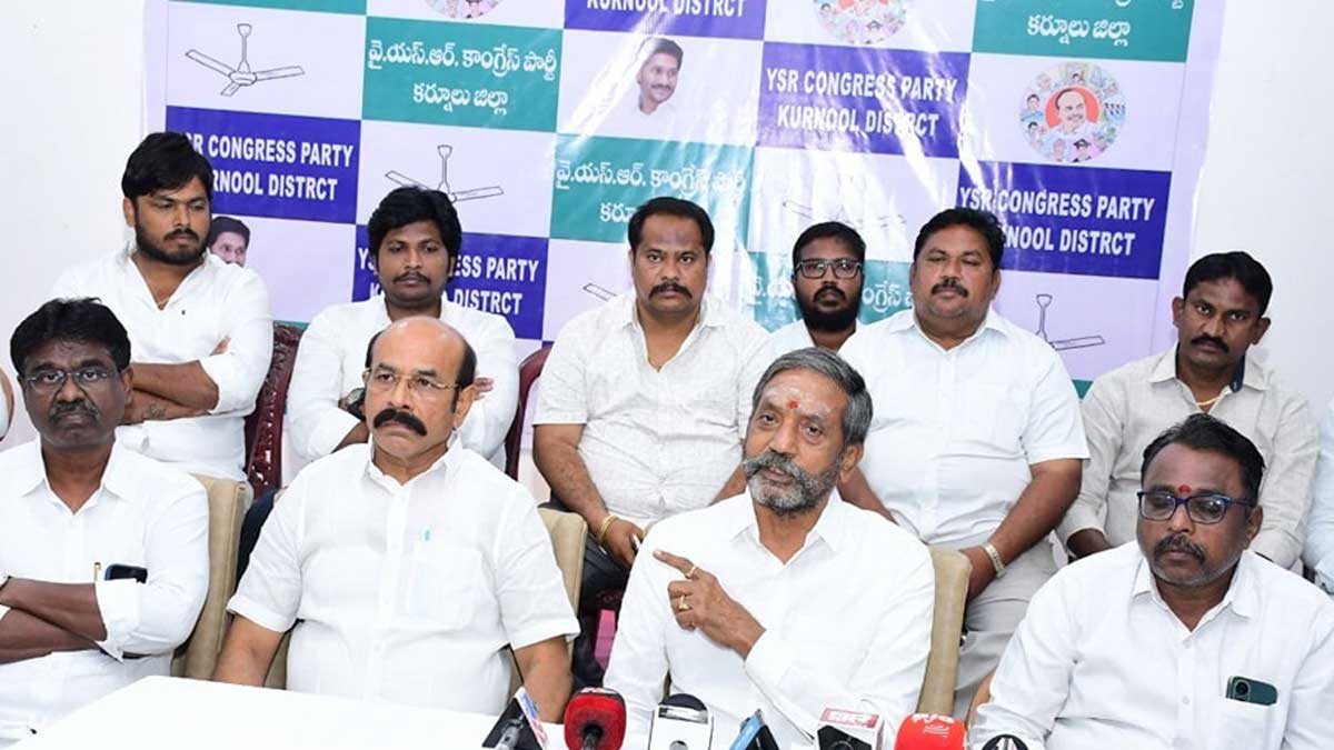 అధికారంలోకి వచ్చిన ప్రతీసారి చంద్రబాబు.. కర్నూలుకు నష్టం చేస్తున్నారని వైసీపీ నేతలు మండిపడ్డారు. ప్రజా ఉద్యమాల ద్వారా కర్నూలు జిల్లాను కాపాడుకుంటామని చెప్పారు. చంద్ర బాబు లా యూనివర్సిటీని తరలించుకుపోతుంటే కూటమి ప్రభుత్వంలోని జిల్లా నేతలు ఎందుకు మాట్లాడటం లేదని ప్రశ్నించారు. జగన్ హయాంలో కర్నూలులో ఏర్పాటు చేసిన న్యాయ పరమైన సంస్థలను అమరావతికి తరలిస్తున్నట్లు కూటమి ప్రభుత్వం హైకోర్టులో అఫిడవిట్ దాఖలు చేసిందని చెప్పుకొచ్చారు. ప్రభుత్వం వెనక్కితగ్గకపోతే న్యాయపరంగా, ప్రజా ఉద్యమాల ద్వారా ఎంత దూరమైనా వెళతామని వైసీపీ నేతలు స్పష్టం చేసారు.