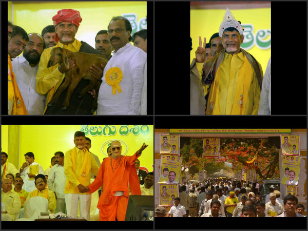 రెండు రోజులపాటు జరిగిన మహానాడు బుధవారం ముగిసింది. ఈ సందర్భంగా నాగలి ధరించి విక్టరీ సింబల్ చూపిస్తున్న చంద్రబాబు నాయుడు.