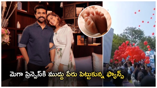 మెగా వారసురాలు వచ్చేసింది అంటూ సోషల్ మీడియా వేదికగా రచ్చ చేస్తున్నారు. మెగా ఫ్యామిలీ లో కి అడుగుపెట్టిన ఆడబిడ్డ సంతోషంగా ఉండాలంటూ దేవుడు ఆశీర్వాదం కోసం పలు దేవాలయాలలో చిరంజీవి అభిమానులు పూజలు చేస్తున్నారు. అపోలో ఆస్పత్రి వద్ద హార్ట్ సింబల్ లో ఉన్న బెలూన్ లను ఎగరవేసి అభిమానులు సంబరాలు జరుపుకుంటున్నారు.