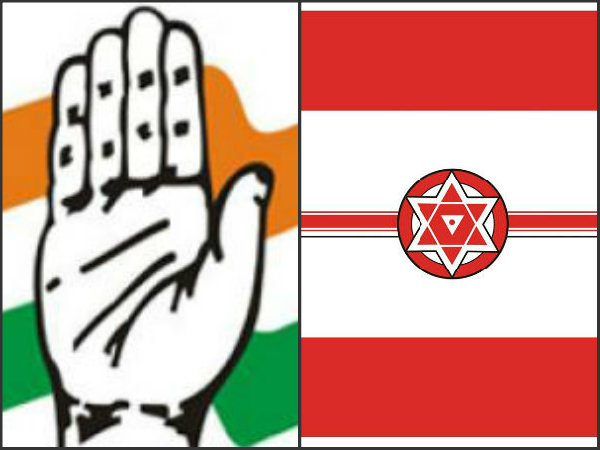 కాంగ్రెస్, జనసేన జెండాలతో ఫ్యాన్స్: ఏమంటారని చిరు