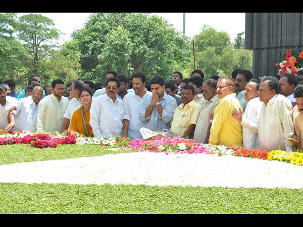 ఎన్టీఆర్ ఘాట్ వద్ద నారా లోకేష్ స్వర్గీయ ఎన్టీ రామారావుకు నివాళులు అర్పించారు. ఆయన వెంట అనుచరులు కూడా ఉన్నారు.