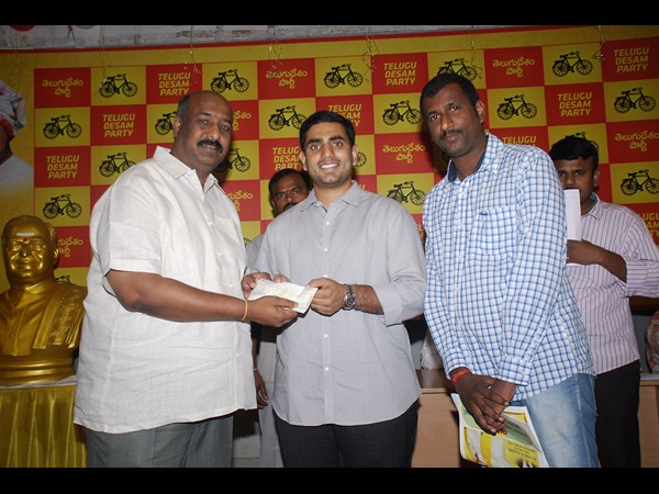 విరాళాలు: నారా లోకేష్ చేతికి చెక్కులు (పిక్చర్స్)