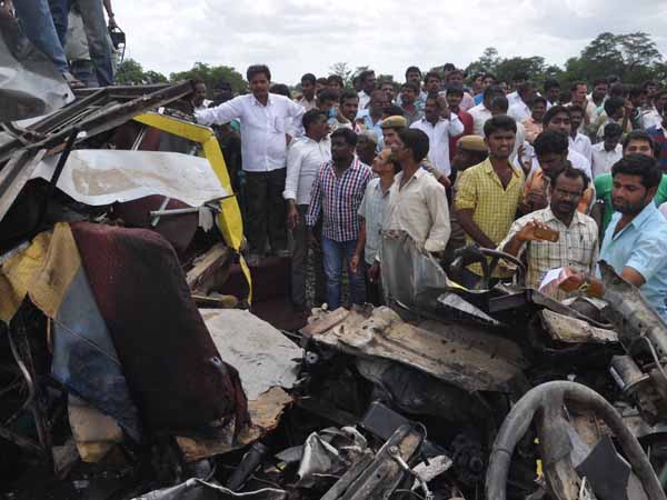 బస్సులో 38 మందికిపైగానే ఉన్నట్లు తెలుస్తోంది. రైల్వే క్రాసింగ్ వద్ద కాపలా లేకపోవడంతో ఈ ప్రమాదం సంభవించింది. ప్రమాదం పట్ల తెలంగాణ ముఖ్యమంత్రి కె. చంద్రశేఖర రావు తీవ్ర దిగ్భ్రాంతి వ్యక్తం చేశారు. సంఘటనా స్థలానికి వెళ్లి సహాయక చర్యలు చేపట్టాలని ఆయన మంత్రులను ఆదేశించారు. ప్రమాదంలో బస్సు నుజ్జునుజ్జయింది. సైరన్ ఇవ్వకపోవడం రైలు వస్తున్న విషయాన్ని బస్సు డ్రైవర్ గుర్తించలేదని అంటున్నారు. రైల్వే క్రాసింగ్ వద్ద గేటు లేదు. గేటు పెట్టాలని స్థానికులు పలు మార్లు కోరినా ఎవరూ పట్టించుకోలేదు.