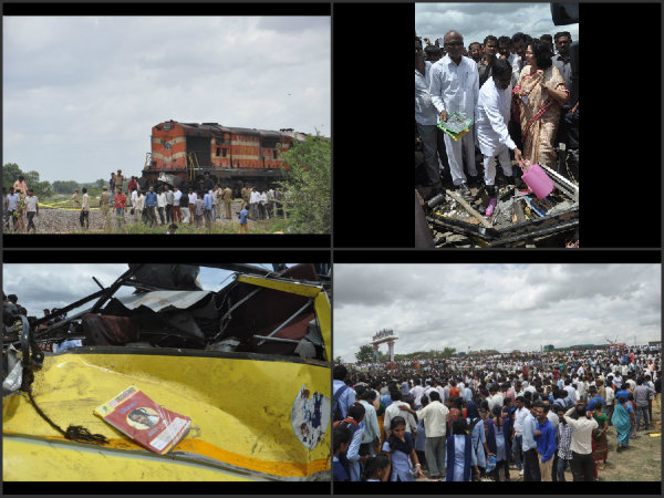 రైల్వే క్రాసింగ్ వద్ద ఈ ప్రమాదం జరిగింది. బస్సును రైలు కిలోమీటరు మేర లాక్కెళ్లింది. సంఘటనా స్థలం వద్ద పరిస్థితి ఘోరంగా ఉంది. విద్యార్థుల తల్లిదండ్రులు, బంధువుల రోదనలతో పరిస్థితి హృదయవిదాకరంగా ఉంది.