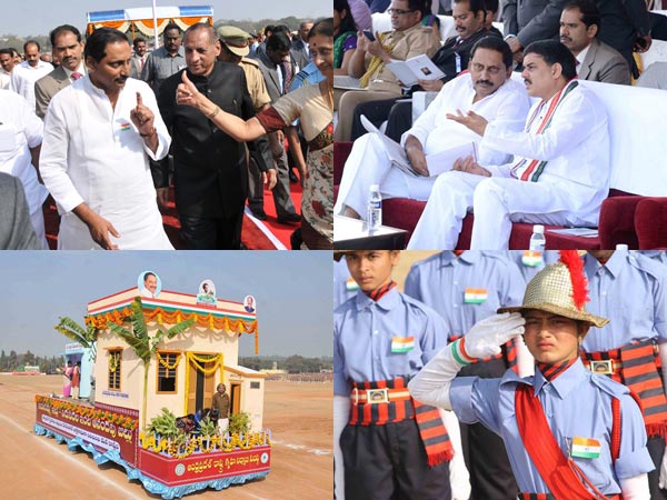 గణతంత్ర వేడుకల్లో ముఖ్యమంత్రి కిరణ్ కుమార్ రెడ్డి, గవర్నర్ నరసింహన్, గవర్నర్ సతీమణి తదితరులు పాల్గొన్నారు. గవర్నర్ సతీమణి కిరణ్ను ఛాలెంజ్ చేస్తున్నట్లుగా ఉన్న దృశ్యం.