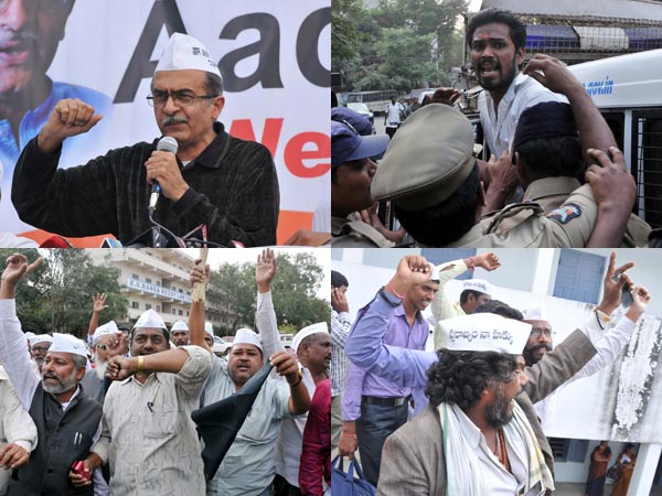 రాష్ట్రంలో ఆమ్ ఆద్మీ పార్టీ (ఎఎపి) అవిర్భావ సభలో జై తెలంగాణ, జై సమైక్యాంధ్ర నినాదాలు మిన్నంటాయి. కాశ్మీర్పై ఎఎపి నేత ప్రశాంత్ భూషణ్ వ్యాఖ్యలకు నిరసనగా ఆందోళన చేసిన కొంతమంది యువకులను పోలీసులు అరెస్టు చేశారు.