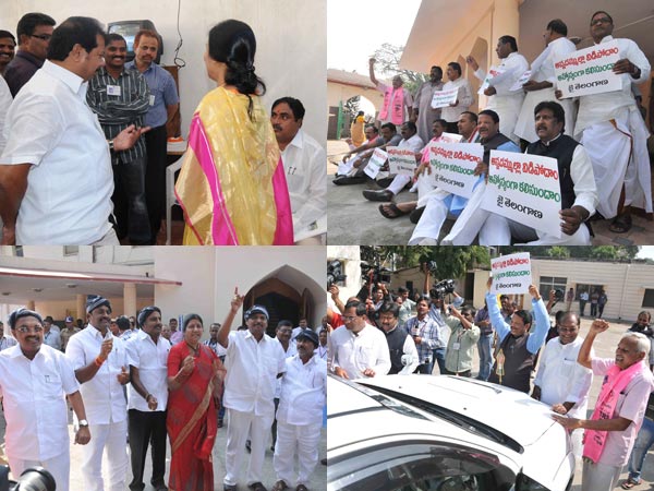 శాసన మండలి వాయిదా పడిన అనంతరం అన్ని పార్టీలకు చెందిన తెలంగాణ ప్రాంత మండలి సభ్యులు అన్నదమ్ముల్లా విడిపోదాం, అన్యోన్యంగా కలిసుందామని ధర్నా చేపట్టారు. జై తెలంగాణ అంటూ నినాదాలు చేస్తున్న దృశ్యం.