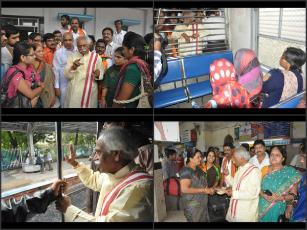 హైదరాబాద్ కాచిగూడ రైల్వే స్టేషన్ నుండి హైటెక్ సిటీ వరకూ ప్రచారం నిర్వహించిన దత్తాత్రేయ ప్రచారాన్ని నాంపల్లి రైల్వే స్టేషన్లో ముగించారు. రైలులో ఓ అమ్మాయి దత్తాత్రేయను ప్రశ్నిస్తున్న దృశ్యం.