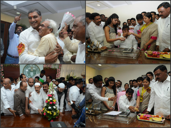 తెలంగాణ రాష్ట్ర నీటి పారుదల, మార్కెటింగ్, శాసనసభా వ్యవహారాల శాఖల మంత్రిగా హరీశ్ రావు ఆదివారం సచివాలయంలో బాధ్యతలు స్వీకరించారు.