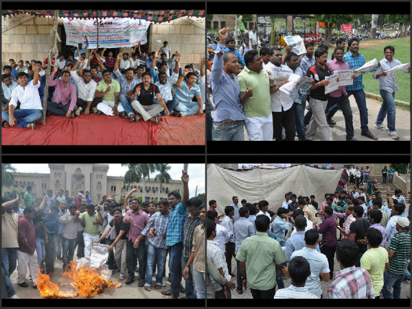 ఉస్మానియా విశ్వవిద్యాలయం ఆవరణలో కాంట్రాక్టు ఉద్యోగుల క్రమబద్ధీకరణను నిరసిస్తూ తెలంగాణ విద్యార్థి, నిరుద్యోగుల ఆధ్వర్యంలో దీక్షలు ప్రారంభించారు. అంతకుముందు పలువురు అడ్డుకున్నారు. దీంతో రభస చోటు చేసుకుంది.