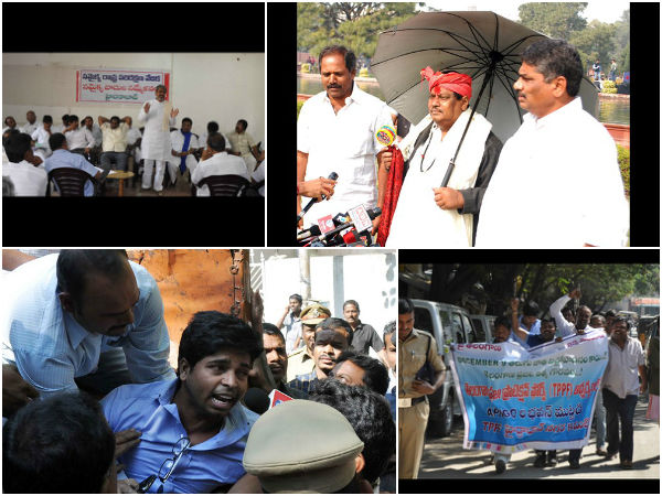 తెలంగాణ ప్రజా ప్రొటెక్షన్ ఫోర్స్ ఆధ్వర్యంలో ఎపిఎన్జీవో భవన్ ముట్టడికి తరలి వస్తున్న తెలంగాణవాదుల దృశ్యం. వారు జై తెలంగాణ నినాదాలు చేశారు. పోలీసులు అరెస్టు చేస్తున్న దృశ్యం.