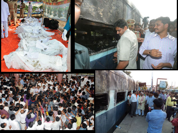 ఐదు లక్షల రూపాయలు నష్ట పరిహారం చెల్లించి చేతులు దులుపుకుంటే సరిపోదని, ప్రజలకు భద్రత కల్పించడం ముఖ్యమని జగన్ అన్నారు. రైలు బోగీని పరిశీలిస్తున్న జగన్.