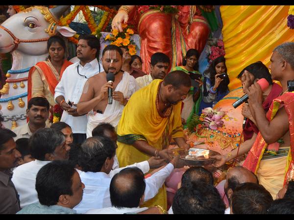 తెలంగాణ రాష్ట్ర ప్రభుత్వం తరఫున ఖైరతాబాద్ వినాయకుడి తలపై పూలవర్షం కురిపించాలని కోరారని తప్పకుండా హెలికాఫ్టర్ ఏర్పాటు చేసి పూలవర్షం కురిపించే ఏర్పాటు చేస్తానని కేసీఆర్ హామీ ఇచ్చారు.