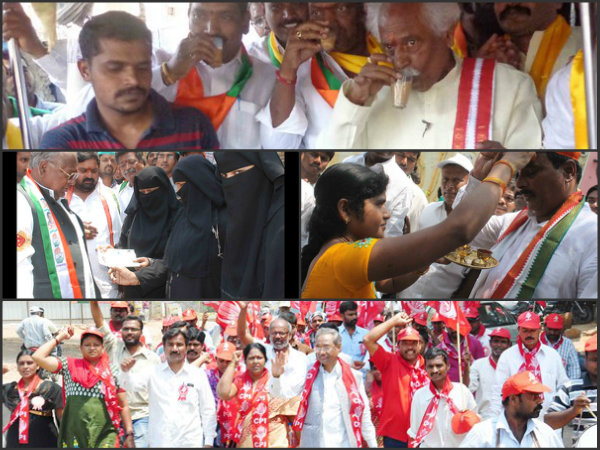 టీ తాగిన విహెచ్, బండారు: అభ్యర్థుల ప్రచారం(పిక్చర్స్)