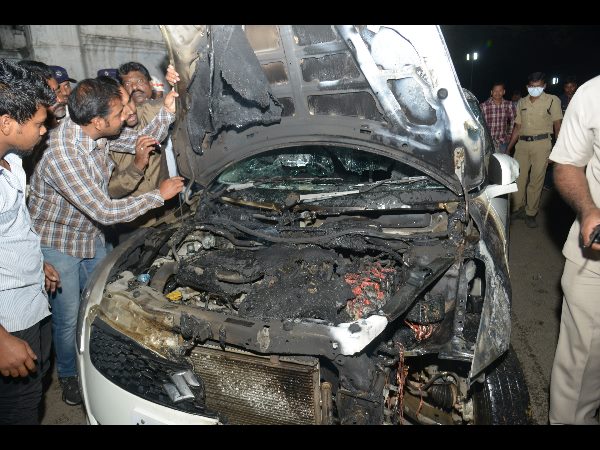అసెంబ్లీ ఎదుట పోలవరం ఎమ్మెల్యే కారు దగ్ధం: తప్పిన ప్రాణాపాయం (ఫొటోలు)