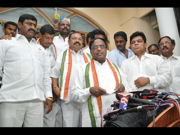 తెలంగాణ పిసిసి అధ్యక్షుడు పొన్నాల లక్ష్మయ్య నుంచి బీ ఫారం తీసుకుంటూ కాంగ్రెసు అభ్యర్థి ఒకరు ఇలా..