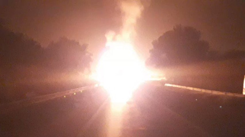 ప్రకాశం జిల్లాలో గ్యాస్ సిలెండర్ల లారీలో భారీ అగ్నిప్రమాదం, పేలిన సిలెండర్లతో రోడ్డు ధ్వంసం!!
