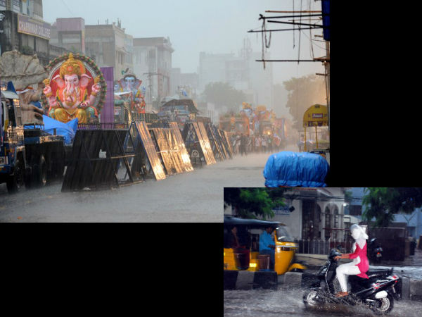 గణేష్కు వర్షం బ్రేక్!: బైక్పై యూత్, గర్ల్ సైతం (పిక్చర్స్)