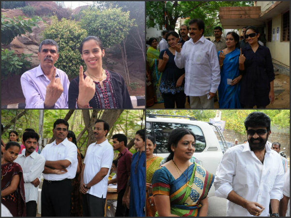 హైదరాబాద్: లోకసభకు, శాసనసభకు తెలంగాణలో బుధవారం పలువురు ప్రముఖులు తమ ఓటు హక్కును వినియోగించుకున్నారు. హైదరాబాదులోని సంపన్న వర్గాలకు చెందిన బంజారాహిల్స్, జూబ్లీహిల్స్ ప్రాంతాల్లో ప్రముఖులు తమ ఓటు హక్కును వినియోగించుకున్నారు.