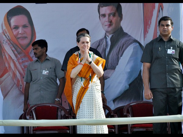 ప్రసంగం ముగిసిన తర్వాత వేదిక దిగిపోతూ ప్రజలకు సోనియా గాంధీ అభివాదం చేశారు. తెలంగాణను అభివృద్ధి చేసుకుందామని సోనియా అన్నారు.