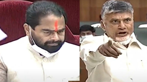 చంద్రబాబుతో పాటు ఇతర టీడీపీ ఎమ్మెల్యేలు తనపై అభ్యంతర వ్యాఖ్యలు చేయడంతో స్పీకర్ తమ్మినేని తీవ్ర ఆగ్రహం వ్యక్తం చేశారు. టీడీపీ ఉడత ఊపులకు, పిల్లి శాపనార్ధాలకు భయపడబోనంటూ స్పీకర్ ఫైర్ అయ్యారు. తన వైపు వేలు చూపిస్తూ చంద్రబాబు చేసిన వ్యాఖ్యలపై స్పీకర్ మండిపడ్డారు. తనను ఎవరూ భయపెట్టలేరంటూ వెళ్లి సీట్లలో కూర్చోవాలంటూ ఆదేశించారు. దీంతో టీడీపీ సభ్యులు చేసేది లేక సీట్లలో కూర్చున్నారు. ఆ తర్వాత వైసీపీ ఎమ్మెల్యే అంబటి రాంబాబుతో పాటు డిప్యూటీ సీఎం అంజాద్ బాషా చంద్రబాబు తీరుపై తీవ్ర అభ్యంతరం తెలిపారు.