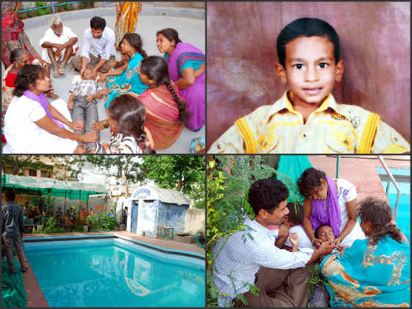 పాఠశాల స్విమ్మింగ్ పూల్ వద్ద తమ కుమారుడు సూర్య విగతజీవుడై పడి ఉండడాన్ని తండ్రి గుర్తించాడు. ఇలా చేతుల మీద మోశాడు.