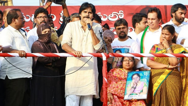 కూతురికి జరిగిన అన్యాయంపై జనసేన అధినేత పవన్ కల్యాణ్కు సుగాలీ పార్వతి విన్నవించారు. సుగాలీ ప్రీతికి న్యాయం చేయాలని ఈ నెల 12వ తేదీన కర్నూలులో పవన్ కల్యాణ్ ర్యాలీ తీశారు. పవన్ కల్యాణ్ డిమాండ్తో సుగాలీ ప్రీతి కేసుపై ఆందోళనలు మిన్నంటాయి. కేసును సీబీఐకి అప్పగించాలని డిమాండ్ వచ్చింది. ఇటీవల కర్నూలులో సీఎం జగన్ పర్యటించిన సందర్భంగా సుగాలీ పార్వతి సమావేశమయ్యారు. తమకు న్యాయం చేయాలని కోరగా.. అందుకు అంగీకరించిన జగన్, సీబీఐ చేత దర్యాప్తు చేయించేందుకు అంగీకరించామని పేర్కొన్నారు. దీంతో పవన్ కల్యాణ్ స్పందించారు. కేసును సీబీఐకి అప్పగించడం మంచి పరిణామమని పేర్కొన్నారు.