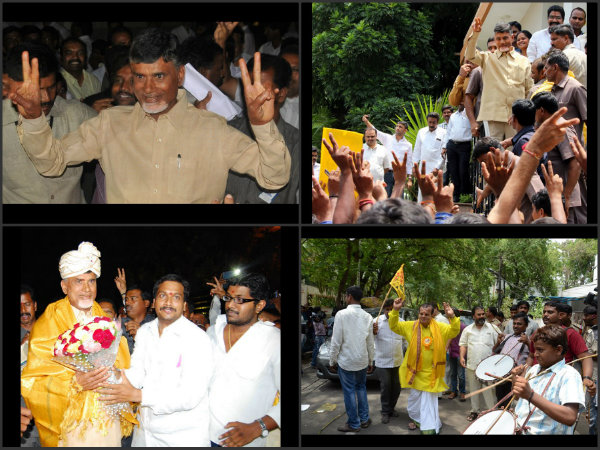 ఎన్నికల ఫలితాల వెలువడిన అనంతరం సీమాంధ్ర, తెలంగాణలోని టిడిపి కార్యకర్తలు టపాసులు కాలుస్తూ.. నృత్యాలు చేస్తూ సంబరాలు చేసుకున్నారు.