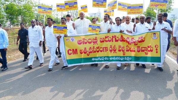 సీఎం వైఎస్ జగన్ (YS Jagan) ఢిల్లీ టూర్ కు వెళ్లి ఏం సాధించారో చెప్పాలని కోరుతూ ఇవాళ ఉదయం ప్లకార్డులు, బ్యానర్లు పట్టుకుని నిరసనగా అసెంబ్లీకి వచ్చిన టీడీపీ ఎమ్మెల్యేలు.. సభలోకి వచ్చాక కూడా ఇదే డిమాండ్ లేవనెత్తారు. జగన్ ఢిల్లీ టూర్ వివరాలు చెప్పాలంటూ సభా కార్యకలాపాల్ని అడ్డుకున్నారు. స్పీకర్ తమ్మినేని సీతారాం పదే పదే హెచ్చరించినా ఫలితం లేకుండా పోయింది. దీంతో 11 మంది టీడీపీ ఎమ్మెల్యేల్ని సస్పెండ్ చేయాలని ప్రభుత్వం స్పీకర్ ను కోరింది.