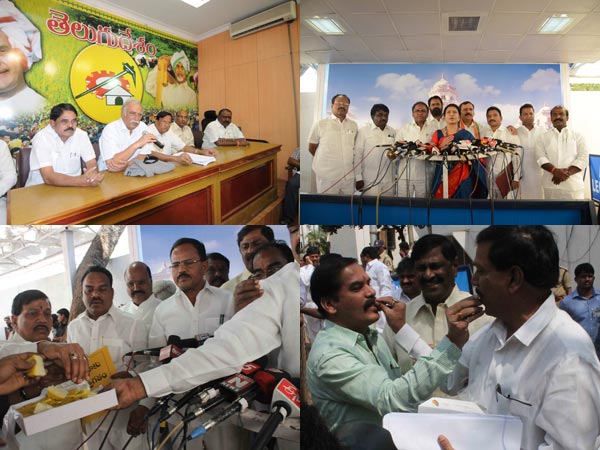 మోత్కుపల్లి నర్సింహులు సహా తెలుగుదేశం తెలంగాణ ప్రాంత శాసనసభ్యులు స్వీట్లతో నోరు తీపి చేసుకున్నారు.