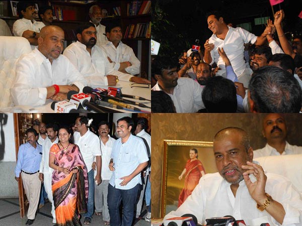 తెలంగాణ నోట్కు కేబినెట్ ఆమోదం తెలపడంతో తెలంగాణ ప్రాంత కాంగ్రెసు నేతలు ఆనందంలో మునిగితేలారు. దామోదర హావభావాలు.