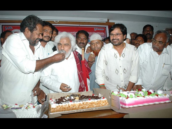 ప్రముఖ చలనచిత్ర నటుడు, దర్శకుడు, నిర్మాత ఆర్ నారాయణ మూర్తి ప్రజా గాయకుడు గద్దర్కు కట్ చేసిన కేక్ను తినిపిస్తూ ఇలా కనిపించారు.