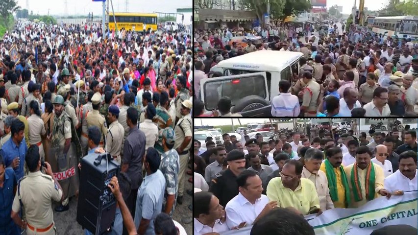 ఈ నేపథ్యంలో అమరావతిలో ఉద్రిక్త పరిస్థితులు ఏర్పడ్డాయి. రాజధానికి వచ్చే రహదారులను కూడా పోలీసులు దిగ్బంధం చేశారు. పెద్ద ఎత్తున పోలీసులు తనిఖీలు నిర్వహిస్తున్నారు. పోలీసుల తనిఖీల నేపథ్యంలో విజయవాడ కృష్ణ వారధిపై ట్రాఫిక్ భారీగా నిలిచిపోయింది. కాలేజీ బస్సులు, సర్వీస్ ఆటోలు, టూ వీలర్ వాహనాల ప్రయాణికులను సైతం ఆపి లగేజీలు తనిఖీ చేస్తున్నారు. అనుమానితుల ఐడీ కార్డులను పరిశీలించి మరీ పంపిస్తున్నారు. ఉద్యమ కారులు ఉన్నట్లైతే అరెస్టులు చేసేందుకు ముందస్తు జాగ్రత్తలు తీసుకున్నట్టు తెలుస్తుంది.
