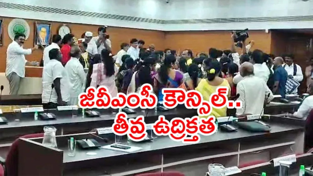 విశాఖపట్నంలోని గ్రేటర్ విశాఖ మున్సిపల్ కార్పొరేషన్ కార్యాలయంలో ఉద్రిక్తత చోటు చేసుకుంది. గీతం యూనివర్సిటీ కి చెందిన వివాదాస్పద భూముల అంశం పైన కౌన్సిల్ సమావేశం రసాభాసగా మారింది. కూటమి కార్పొరేటర్లు, వైయస్సార్ కాంగ్రెస్ కార్పొరేటర్లు మధ్య తీవ్ర వాగ్వాదం చెలరేగి చివరికి అది బాహాబాహీ కి దారి తీసింది.