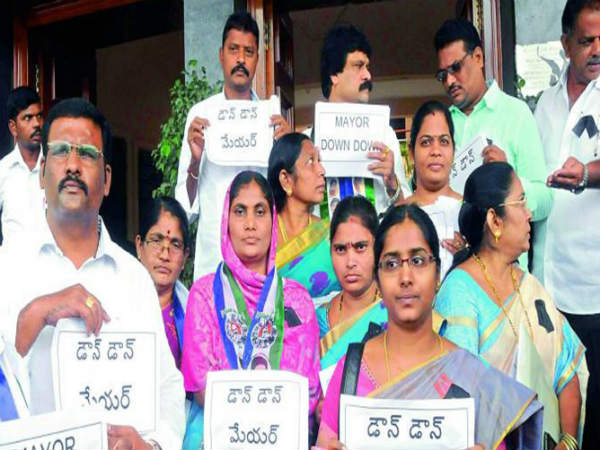 మరోవైపు సమావేశం లోపల తమ సభ్యులను మార్షల్స్ తో గెంటేయడాన్ని నిరసిస్తూ మిగతా వైసీపీ కార్పొరేటర్లు మేయర్ పోడియం వద్ద ఆందోళన కొనసాగించారు. అయితే వైసీపీ కార్పొరేటర్లను అకారణంగా సస్పెండ్ చేశారని టిడిపి మినహా మిగతా విపక్ష సభ్యులు తప్పుబట్టారు.