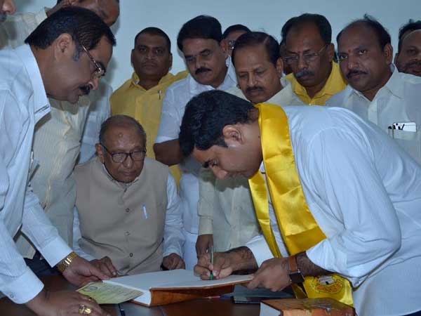 ఆంధ్రప్రదేశ్ ముఖ్యమంత్రి చంద్రబాబునాయుడు తనయుడు లోకేష్ ఆదివారం నాడు మంత్రిగా ప్రమాణస్వీకారం చేశారు. లోకేష్ ప్రమాణ స్వీకార కార్యక్రమాన్ని చూసేందుకు ఎన్టీఆర్ కుటుంబసభ్యులు పెద్ద ఎత్తున అమరావతికి చేరుకొన్నారు.అయితే 2014 ఎన్నికల్లో సినీ నటుడు బాలకృష్ణ హిందూపురం అసెంబ్లీ స్థానం నుండి ఎమ్మెల్యేగా గెలిచారు.