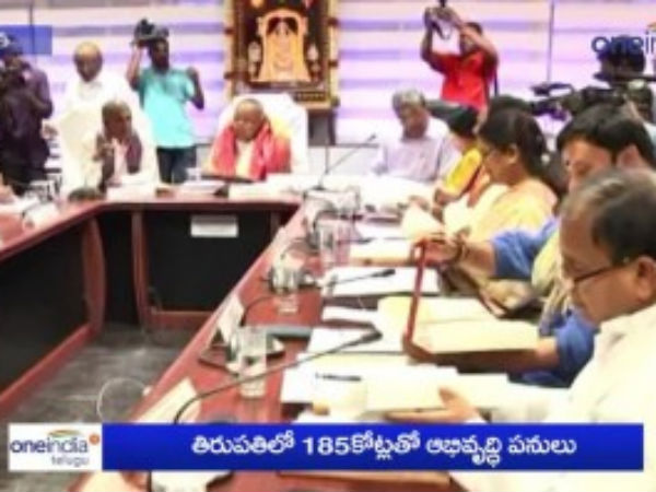 చిత్తూరు: తిరుమల తిరుపతి దేవస్థానం పాలక మండలి సమావేశం మంగళవారం ఉదయం జరిగింది. చైర్మన్ చదలవాడ కృష్ణమూర్తి అధ్యక్షతన స్థానిక అన్నమయ్య భవన్ అతిథి గృహంలో జరిగింది. ఇందులో భాగంగా రూ.185 కోట్లతో తిరుపతిలో అభివృద్ధి చేయాలని పాలక మండలి నిర్ణయించింది. ఆవునెయ్యి కొనుగోలు చేసేందుకు రూ.178 కోట్లు మంజూరు చేసింది. తిరుచానురు అమ్మవారి ఆలయంలో చంద్రప్రభ వాహనానికి రూ.5 కోట్ల 6 లక్షల రూపాయలతో వెండి వాహనం చేయించనున్నారు.