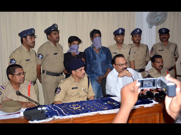 దొంగల వద్ద నుంచి 210 గ్రాముల బంగారం, 160 గ్రాముల వెండి ఆభరణాలు, రెండు సెల్ఫోన్లు స్వాధీనం చేసుకున్నారు. ఈ మేరకు క్రైం డిసిపి జె మురళీధర్ వివరాలను వెల్లడించారు.