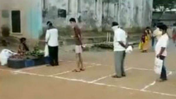 మాకినేని బసవ పున్నయ్య స్టేడియానికి వచ్చే వారు సామాజిక దూరాన్ని పాటించడం కోసం ప్రత్యేకంగా అధికారులు ముగ్గుతో గిరి గీశారు. ఆ సర్కిల్లోనే నిల్చోవాలని ఆదేశించారు. ఒక్క సర్కిల్ మధ్య దూరం ఒకటిన్నర మీటర్ వరకు ఉంటోంది. ఆ సర్కిల్లోనే నిల్చోవాలని, దాన్ని దాటి బయటికి వస్తే.. కఠిన చర్యలు తప్పవని అధికారులు హెచ్చరిస్తున్నారు. అలా బయటికి వచ్చిన వారికి భారీగా జరిమానా విధిస్తామని చెబుతున్నారు.