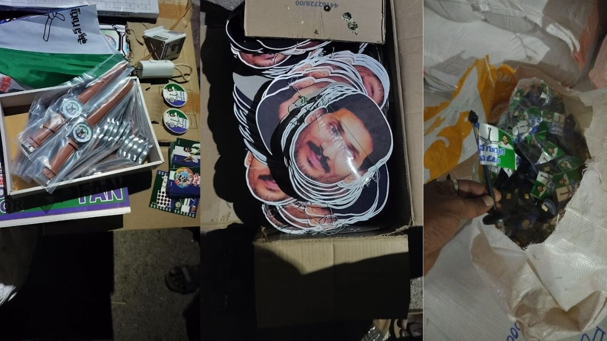 ఇక సోదాల సందర్భంగా జగన్ బొమ్మతో ఉన్న చేతి గడియారాలు,వైసీపీ గుర్తు రంగులతో ఉన్న గొడుగులు, గ్రైండర్లు, కుక్కర్లు, స్పీకర్లు, సెల్ఫోన్ కవర్లు వంటివి ఈసీ అధికారులు కనుగొన్నారు.దీనిపై ప్రతిపక్ష టీడీపీ ఈసీకి ఫిర్యాదు చేసింది. ఓటర్లను ప్రభావితం చేసేందుకు వారిని ప్రలోభాలకు గురిచేసేందుకు వైసీపీ నాయకులు ప్రయత్నిస్తున్నారని టీడీపీ మండిపడింది. మార్చి 26వ తేదీ మధ్యాహ్నం 2 గంటలకు ఫిర్యాదు చేయగా.. అధికారులు ఎవరూ పట్టించుకోలేదని చర్యలు కూడా తీసుకోలేదని టీడీపీ నాయకులు ఆరోపించారు.తాహసీల్దారుకు విషయం తెలిసినప్పటికీ కూడా మరుసటి రోజు వరకు ఎలాంటి చర్యలు తీసుకోలేదని టీడీపీ ఆరోపిస్తోంది.