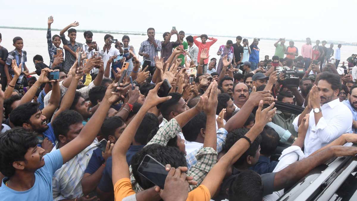 విజయవాడ కృష్ణలంక ఏరియాలో రిటైనింగ్ వాల్ దగ్గర కృష్ణా నది ప్రవాహాన్ని పరిశీలించిన మాజీ ముఖ్యమంత్రి వైయస్ జగన్ గారు.
