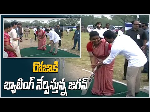 సీఎం వైఎస్ జగన్ తొలుత క్రికెట్ పిచ్ పై బ్యాటింగ్ చేయమంటూ బ్యాట్ చేతికి ఇచ్చి మంత్రి ఆర్కే రోజాను ఆహ్వానించారు. అనంతరం బ్యాట్ పట్టుకున్న రోజాకు పిచ్ పై దాన్ని ఎక్కడ పెట్టాలో తెలియకపోవడంతో స్వయంగా సీఎం జగన్ క్రీజులో బ్యాట్ ఎక్కడ ఉంచాలో, క్రీజులో ఎలా నిలబడాలో, బ్యాటింగ్ ఎలా చేయాలో చేసి చూపించారు. దీంతో ఆమె కూడా అంతే ఓపిగ్గా బ్యాటింగ్ పాఠాలు నేర్చుకుంటూ కనిపించారు.